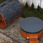 - și… colțul de relaxare JoySpa: ciubăr cu interior din fibră de sticlă + saună pe lemne