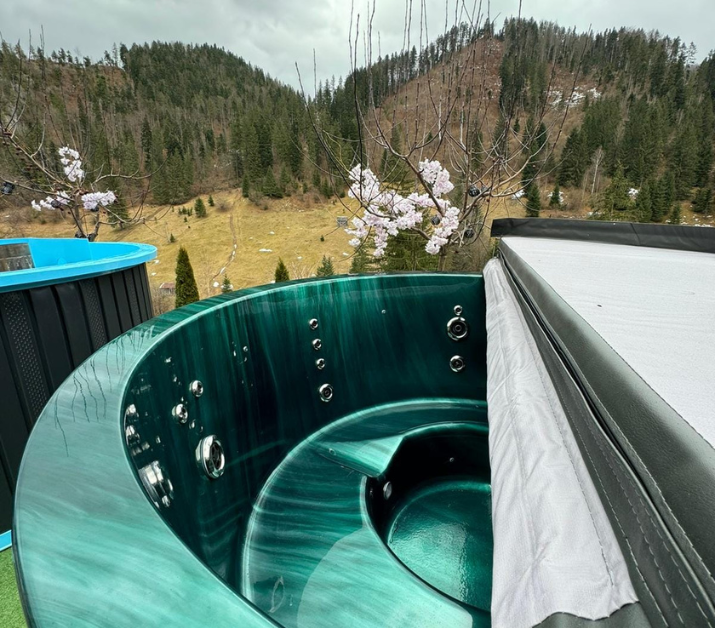 Una dintre cele mai apreciate atracții la Casa Toplița este ciubărul din fibră de sticlă, care le oferă oaspeților momente unice de relaxare.