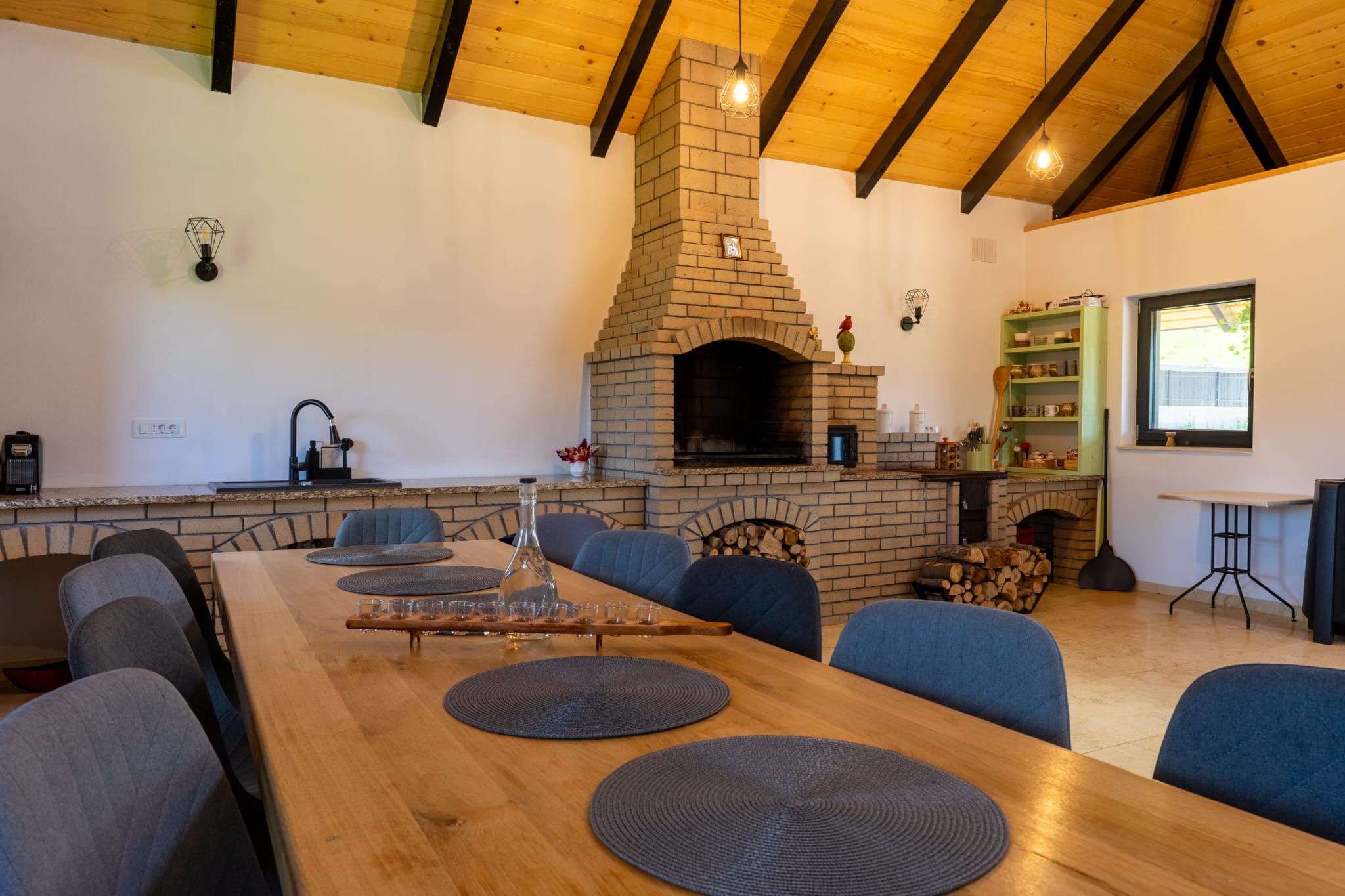 - Living generos pentru 14 persoane, cu șemineu și bucătărie complet echipată