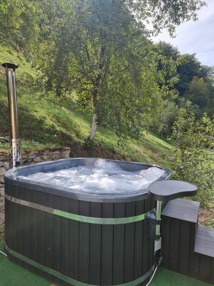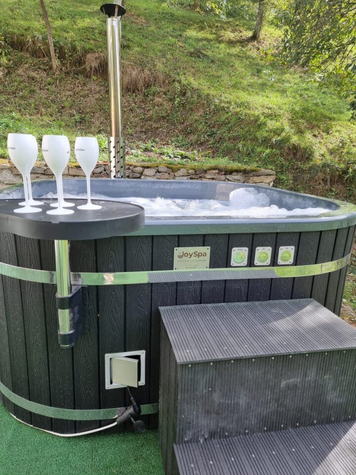 Capacul pliabil, cu izolație de 10 cm, ajută la menținerea căldurii pentru o perioadă mai lungă de timp, iar exteriorul din WPC nu necesită întreținere specială, oferind o durabilitate extinsă.