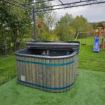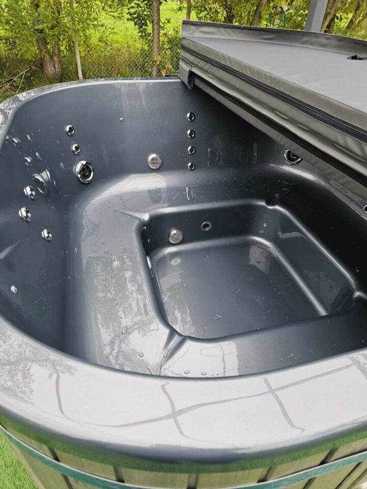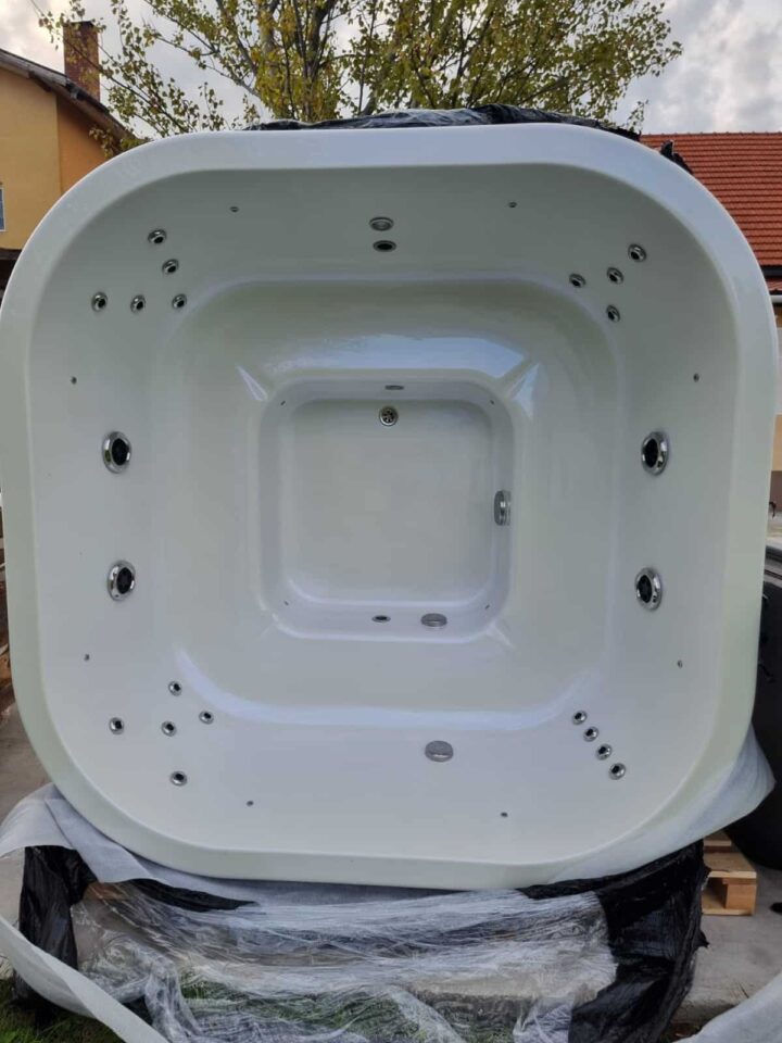 Ciubărul Pătrat Luxury cu încălzitor electric are o latură exterioară de 2,05 m și o înălțime de 1 m, fiind fabricat din acryl durabil, mai rezistent decât fibra de sticlă, perfect pentru utilizarea cu apă sărată. Volumul de apă necesar este de aproximativ 2 mc, iar încălzitorul electric de 6 kW, dotat cu termostat, menține temperatura apei între 36-38°C, ajustând automat încălzirea pentru un confort constant.