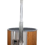 Interiorul din fibră de sticlă de culoare Gri Antracit este elegant și ușor de întreținut, păstrând apa curată și caldă mai mult timp. Exteriorul, finisat din lemn vopsit (în patru culori disponibile – Ebony, Kastanie, Pine, Teak), oferă un aspect natural, perfect integrat în orice peisaj montan sau rustic.