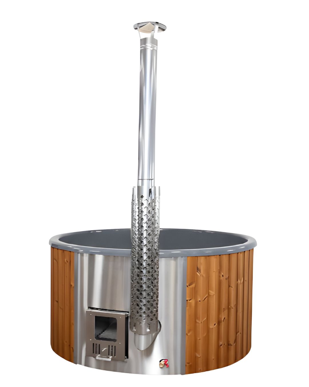 Capacul izolat de 10 cm menține temperatura apei ore întregi, iar soba integrată din inox, complet echipată cu horn, palarie de vânt și protecție anti-ardere, asigură încălzirea rapidă și eficientă.