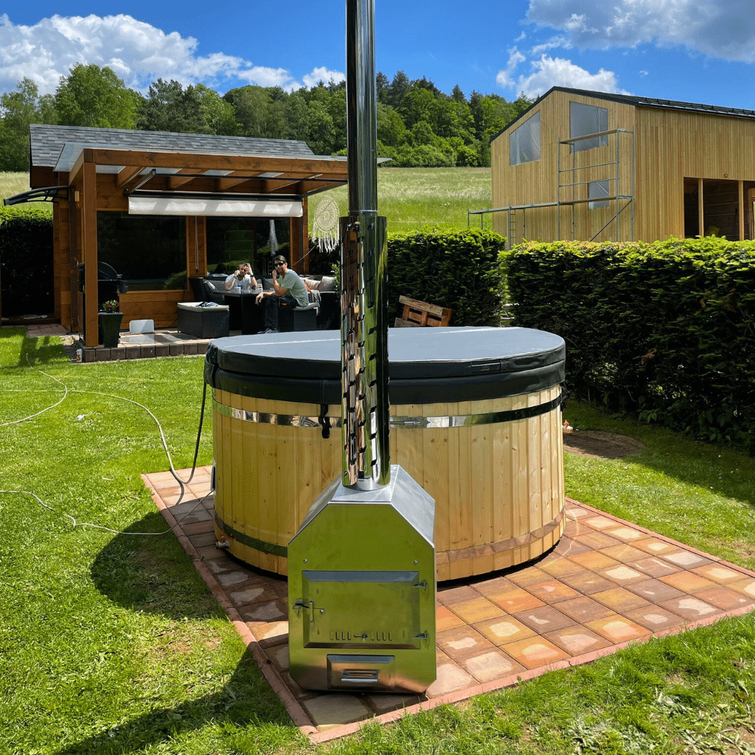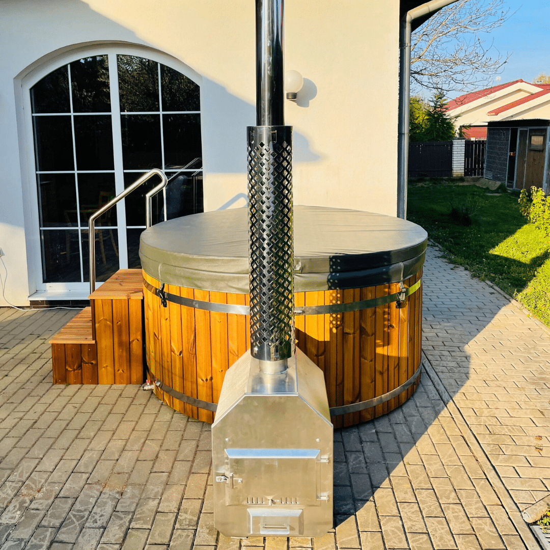 Jacuzzi PREMIUM cu soba din INOX – EXTERIOARA – 2.25 m, pentru 7-9 persoane