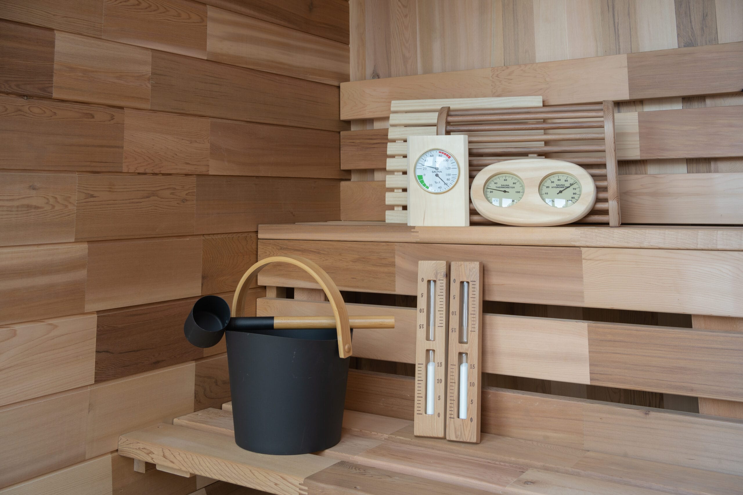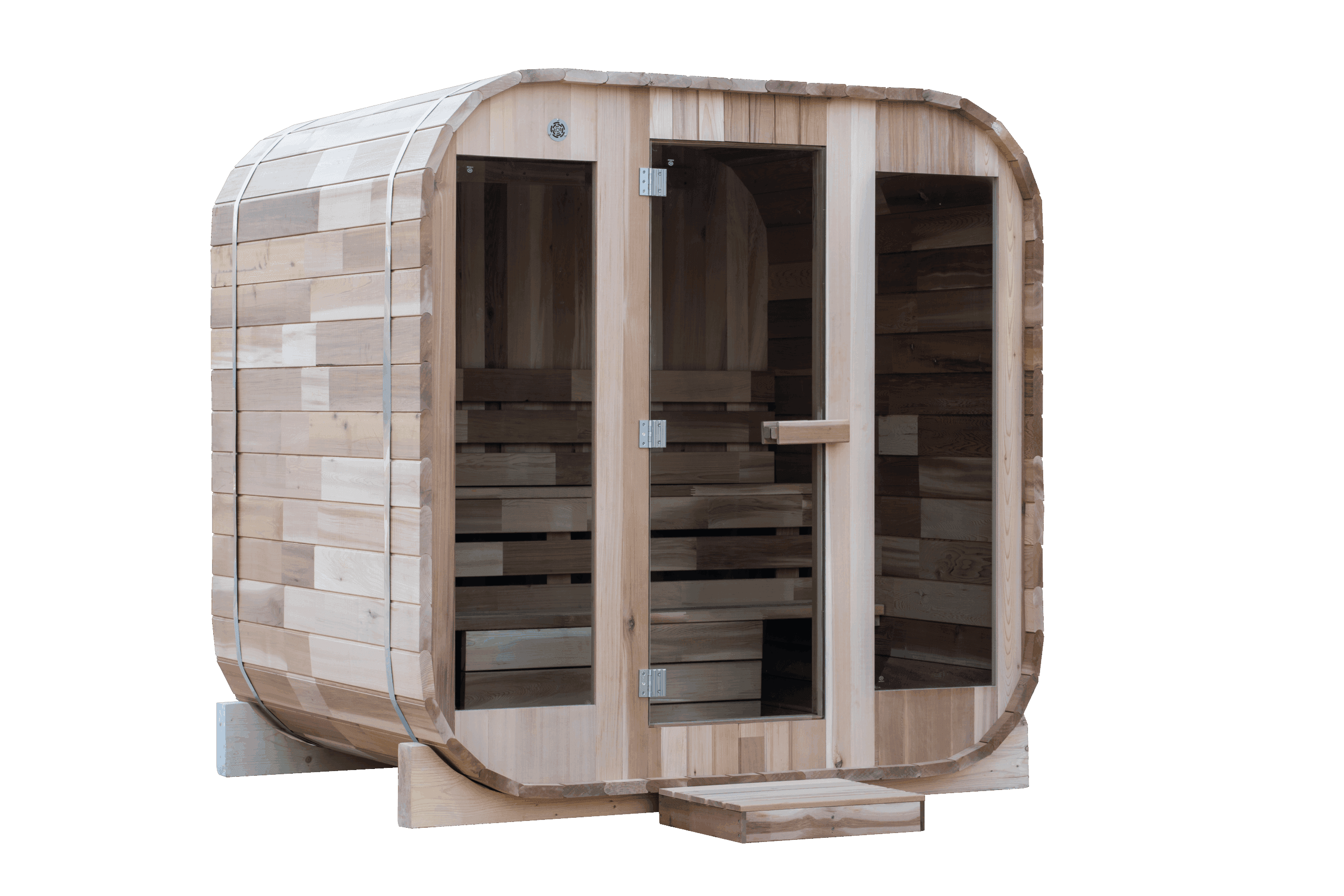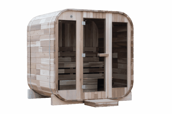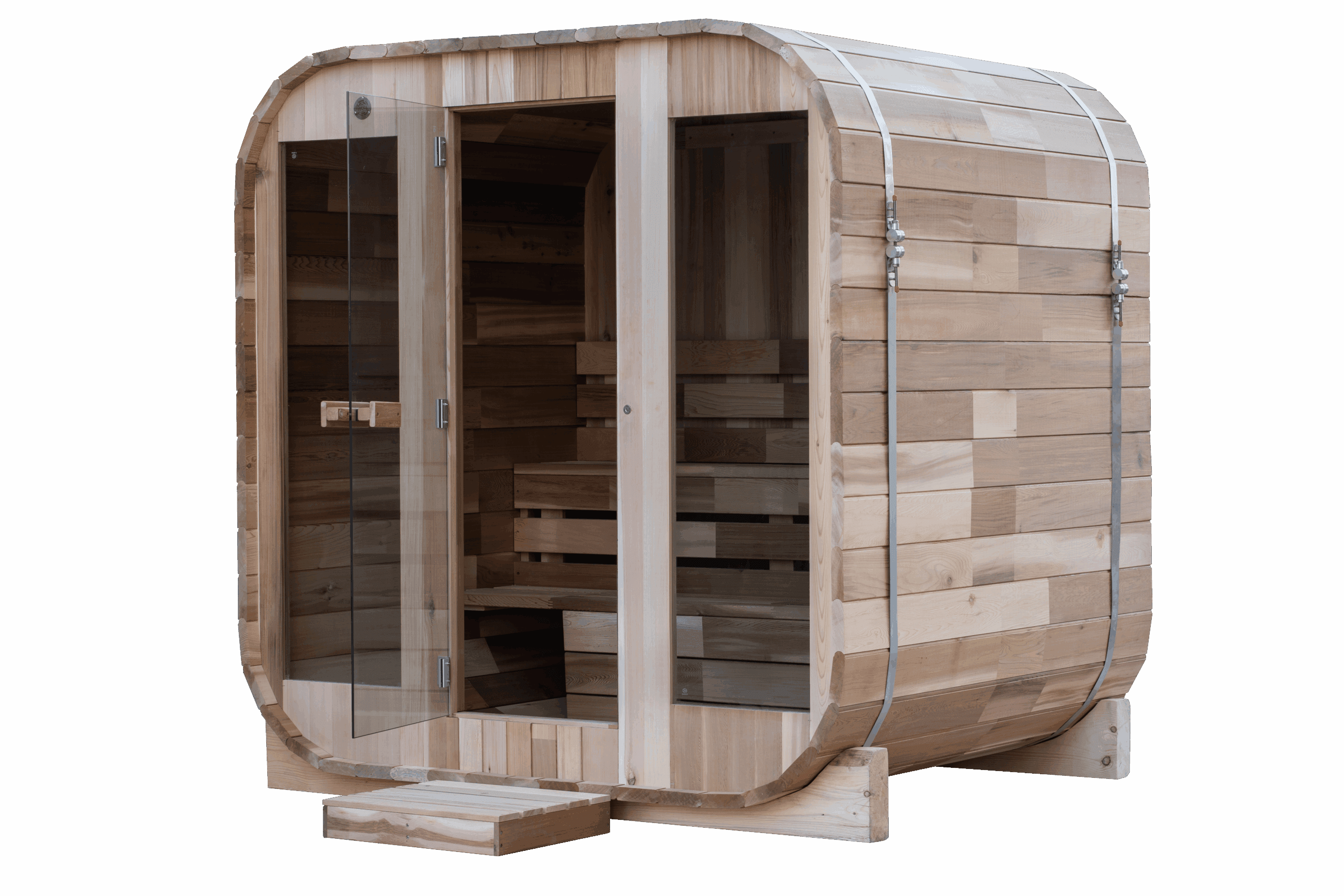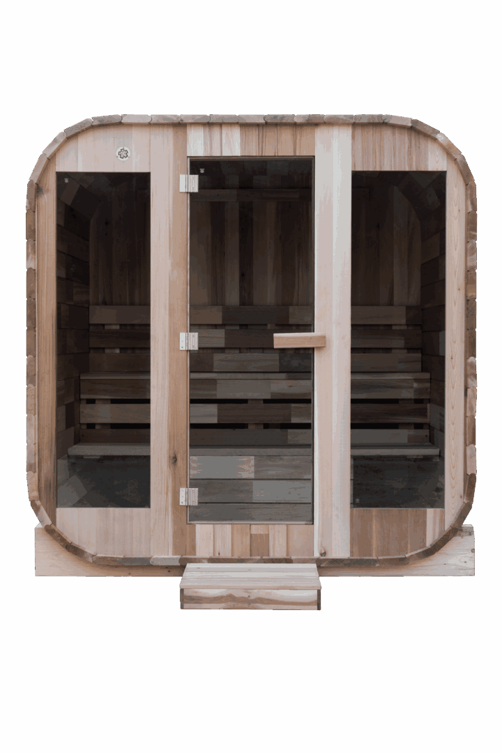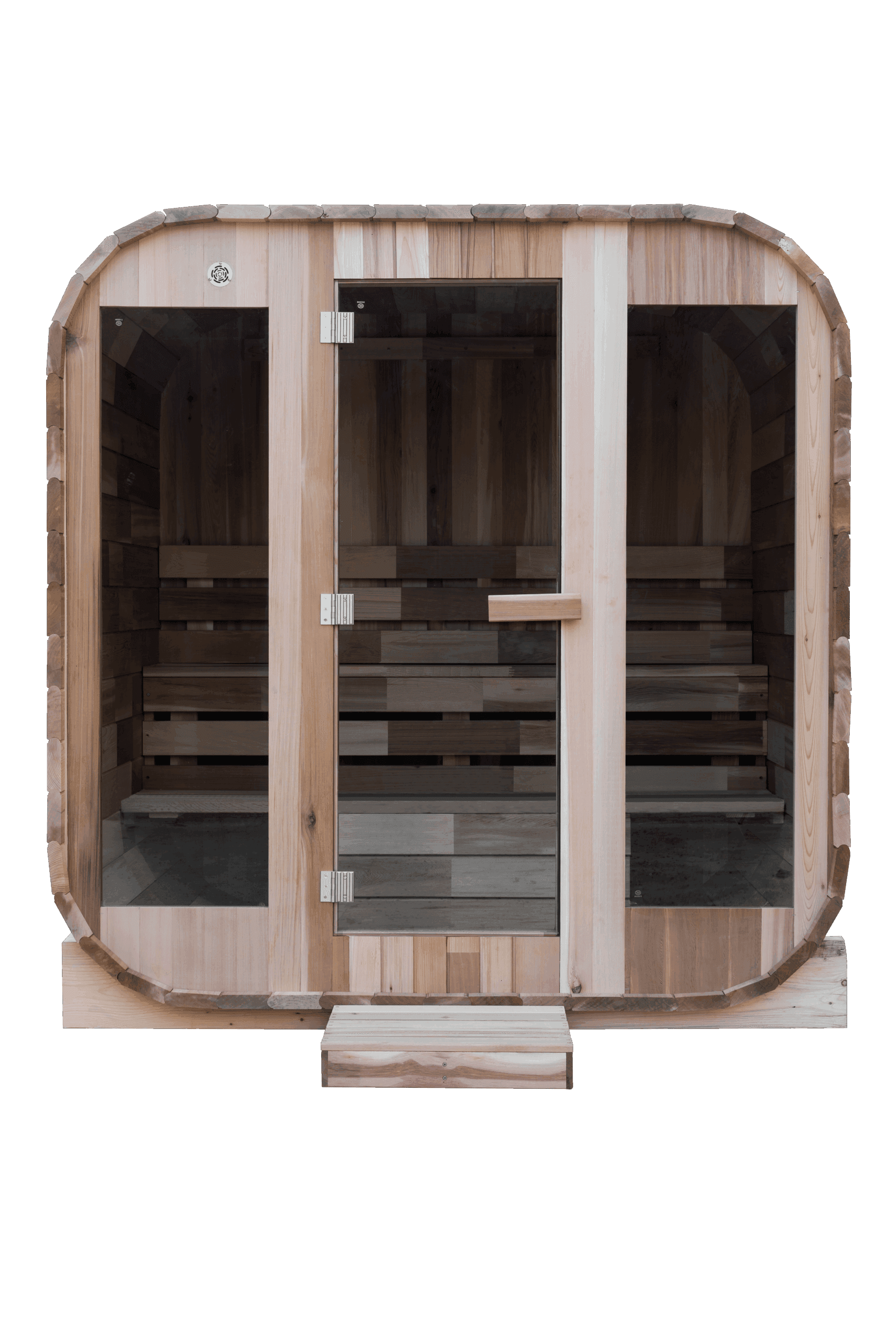 Această saună pătrată pentru 2–4 persoane, concepută pentru spații restrânse, se remarcă prin materialul său nobil: cedrul roșu Douglas, un lemn rar și valoros, ales în mod special pentru saune de înaltă calitate.