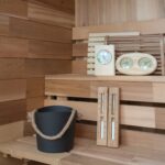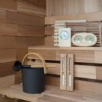 • Spătar, lampă, cârlig, cupă aromă și pietre de saună