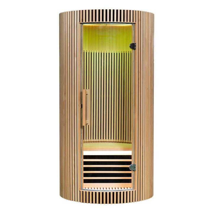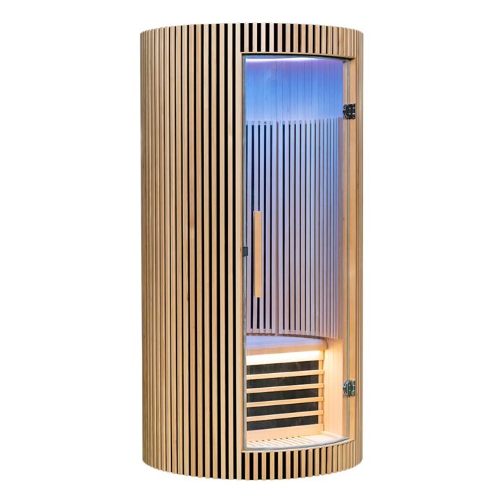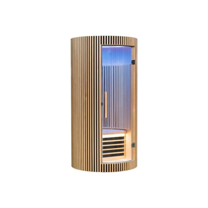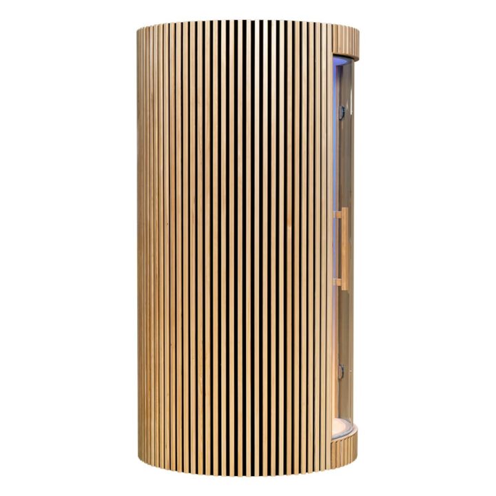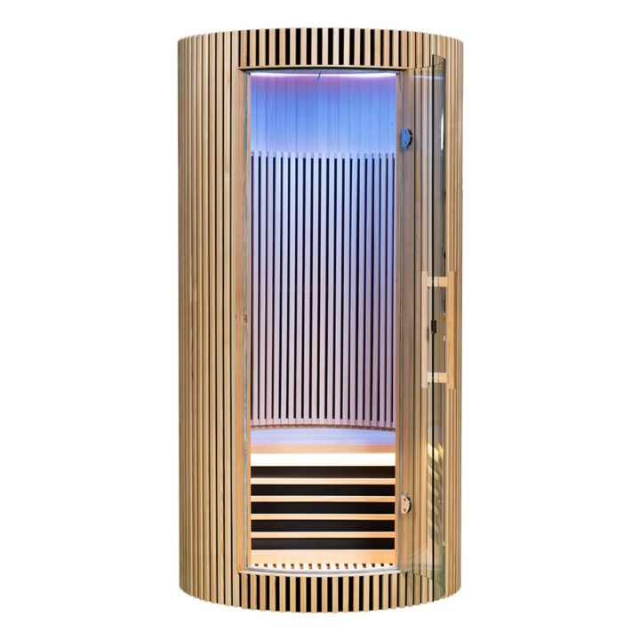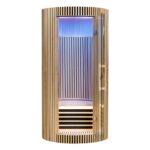 Un concept unic de saună infraroșu pentru uz personal – această saună rotundă din Tei Termotratat pentru 1 persoană combină eficiența unui sistem de încălzire cu panouri cu infraroșu pentru un efect terapeutic profund și iluminare ambientală,pentru o experiență de wellness modernă și relaxantă.