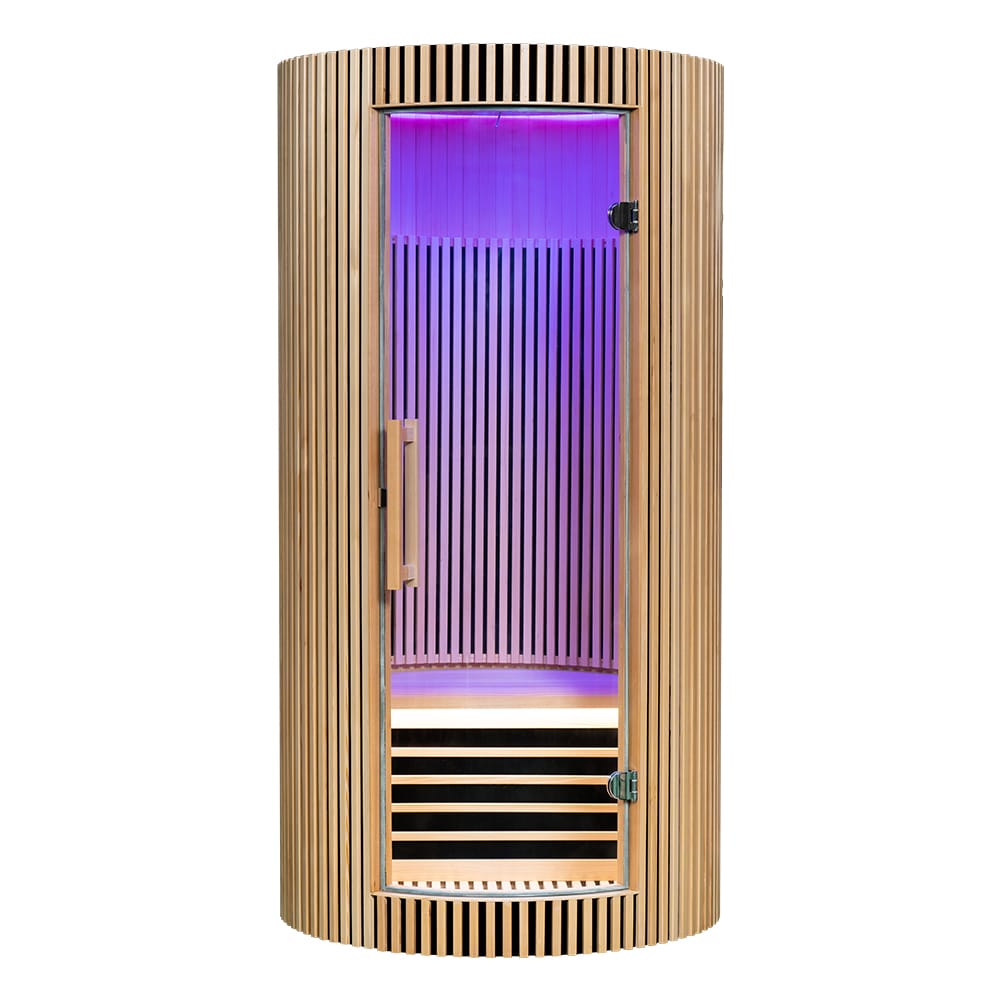 Saună de interior cu infraroșu 1 persoană, formă rotundă, din tei termotratat